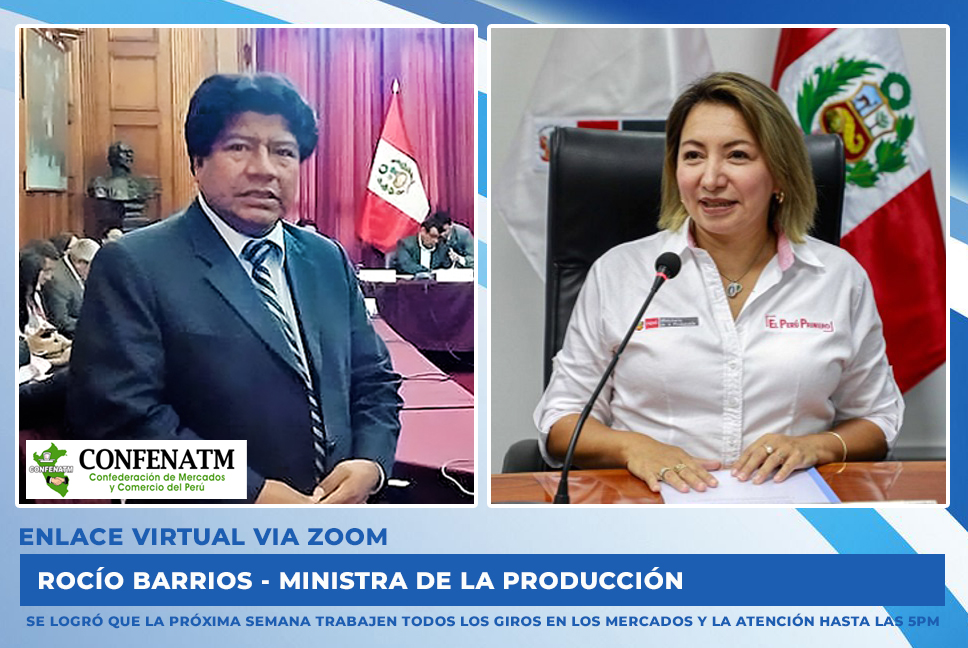 La Confederación de mercados y comercio del Perú "CONFENATM" informa que el día de hoy 12 de junio 2020, hemos enviado un oficio a la MINISTRA DE LA PRODUCCIÓN Dra. ROCIO BARRIOS, agradeciéndole por la reunión que hemos sostenido el día de ayer 11 de junio 2020, EN DONDE SE LOGRÓ QUE LA PRÓXIMA SEMANA TRABAJEN TODOS LOS GIROS EN LOS MERCADOS DE ABASTOS y que la atención sea HASTA LAS 5 PM. conforme es en los supermercados, entre otros puntos.
